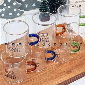 شات پیرکس گود مورنینگ دسته رنگی بسیار با کیفیت مناسب برای میل کردن مایعاتی از جمله آب ، شیر، قهوه و…
